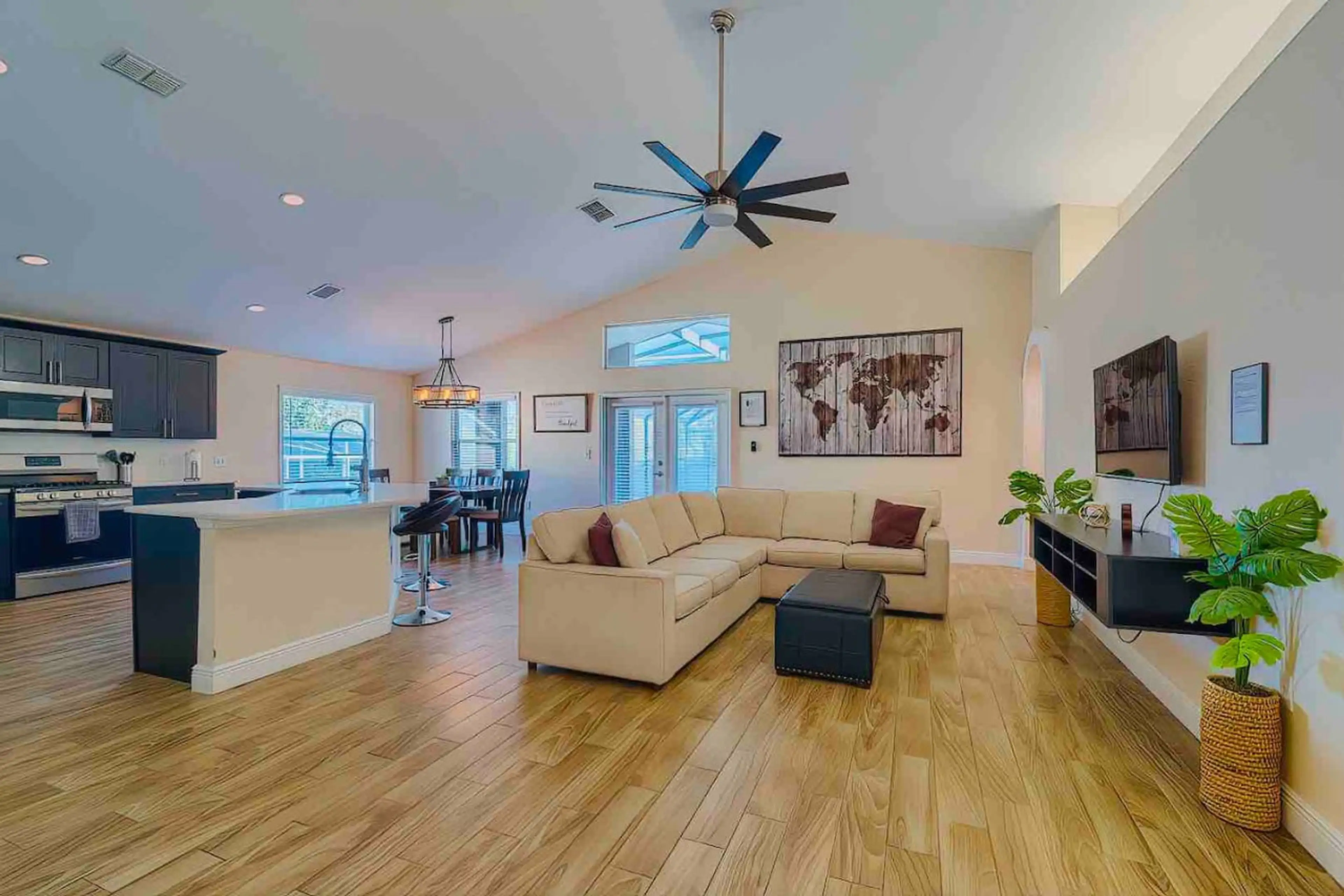 Welcome to your Spacious Getaway! Exterior Features: ★ LED Lights in Pool and on Pool Cage ★ Fenced-in yard & Fire-pit ★ Doorbell & Driveway Camera for safety Interior Features: ★ Ping Pong Table ★Large Shower in Master Bathroom ★ROKU on each TV Extras: ★ Heated Pool up to 95 Degrees - $40 per da...